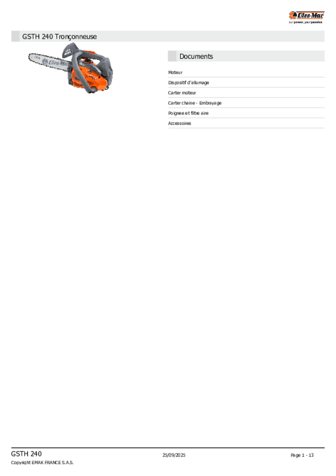 | Cylindrée | 25 cc |