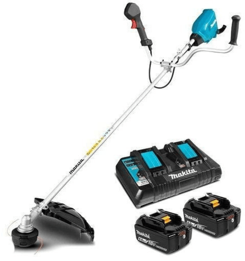 2 batterie 18 V 5Ah LI-ion. <br/>Puissance 1kW. <br/>Régime à vide : 6500 tr/min. <br/>Diamètre de coupe 255/430 mm. <br/>3 vitesses de coupe. <br/>Guidon asymétrique. <br/>Inversseur de sens de rotation permettant d'éliminer les mauvaises herbes coincées dans l'outil. <br/>Livré avec : <br/>-Tête à fil Tap & Go. <br/>-Lame plastique 3 dents. <br/>-Couteau 2 dents 255mm. <br/>-Déflecteur. <br/>-Chargeur rapide double. <br/>-2 Batteries 5 Ah. <br/>-Harnais. <br/>Poids 6,6 kg.
