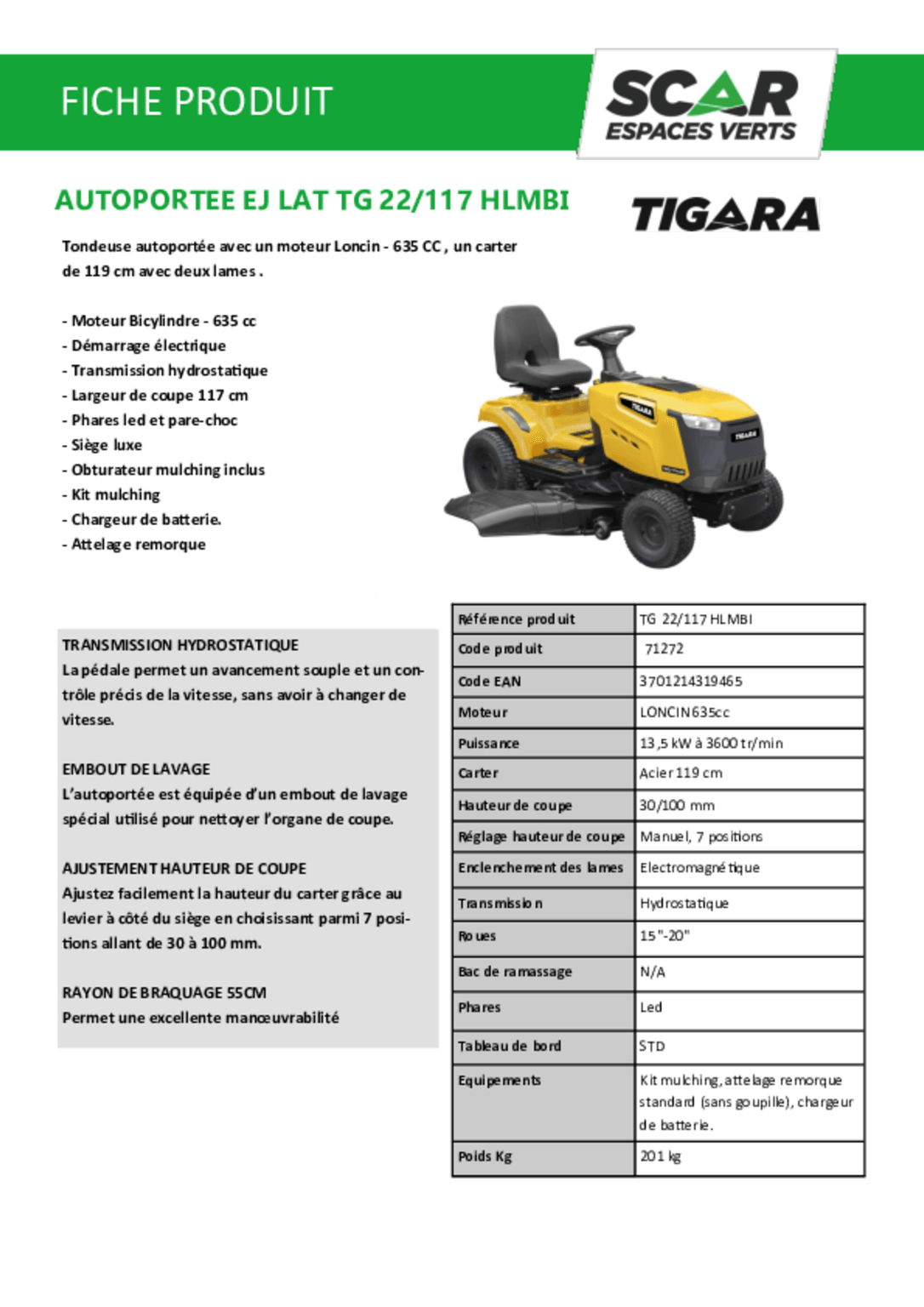 | Largeur de coupe | 117 cm |