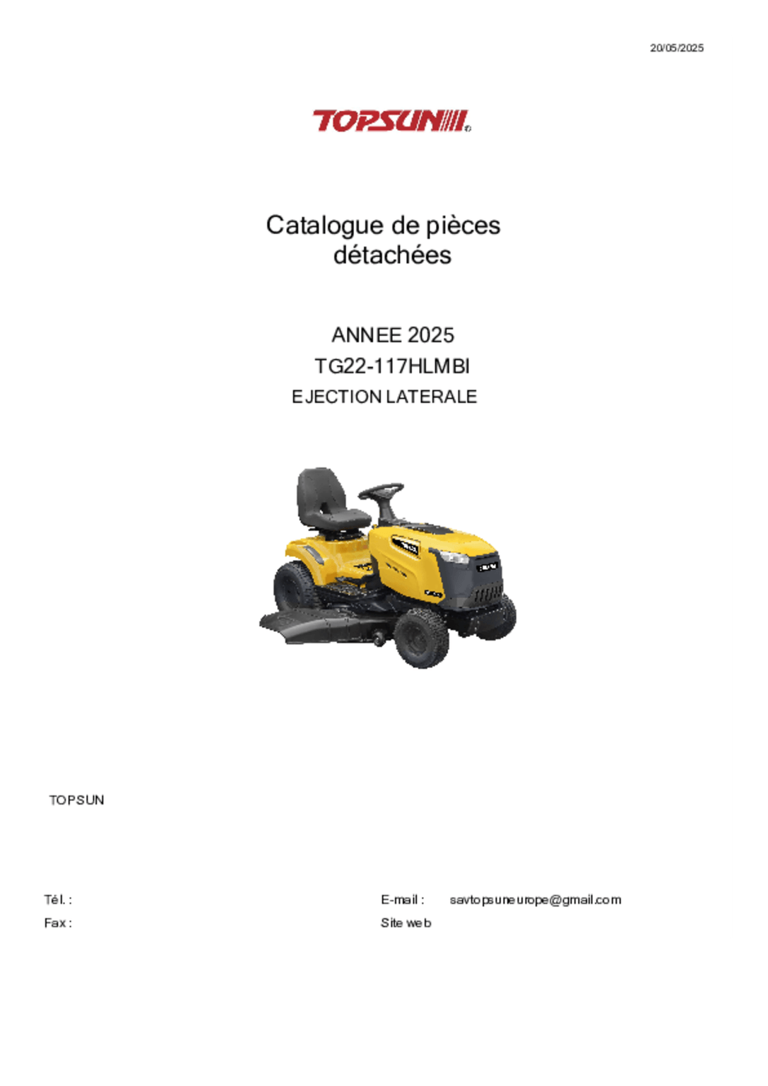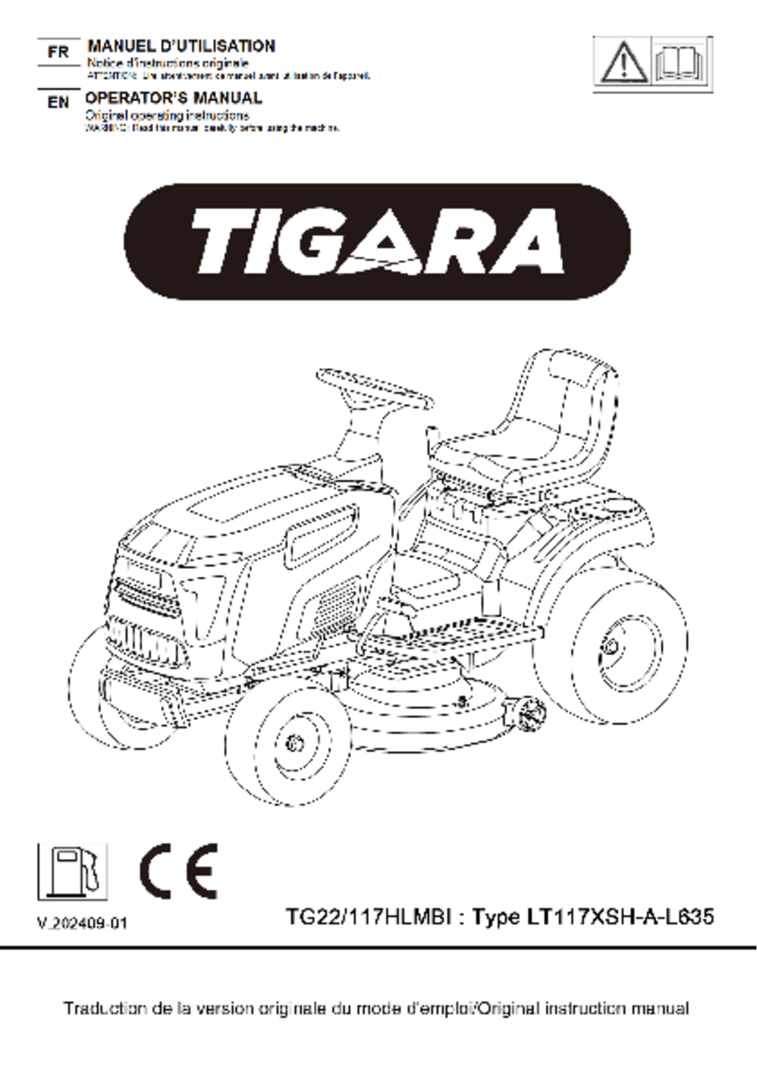 - Tondeuse autoportée à éjection latérale TG 22/117 HLMBi