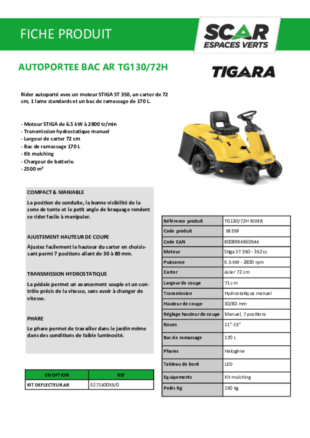 - Tondeuse autoportée à éjection arrière TG 130/72H