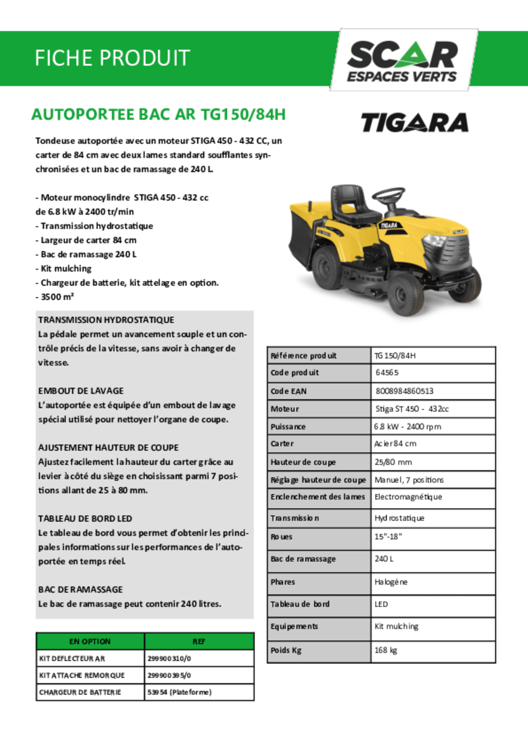- Tondeuse autoportée à éjection arrière TG 150/84 H