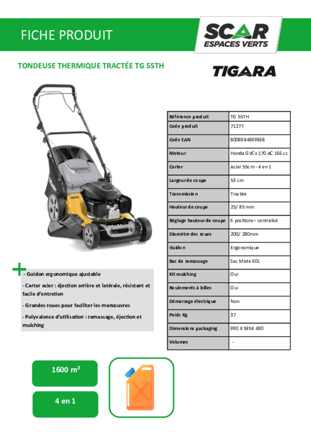 Hauteur de coupe centralisée 6 positions de 25 à 85 mm.