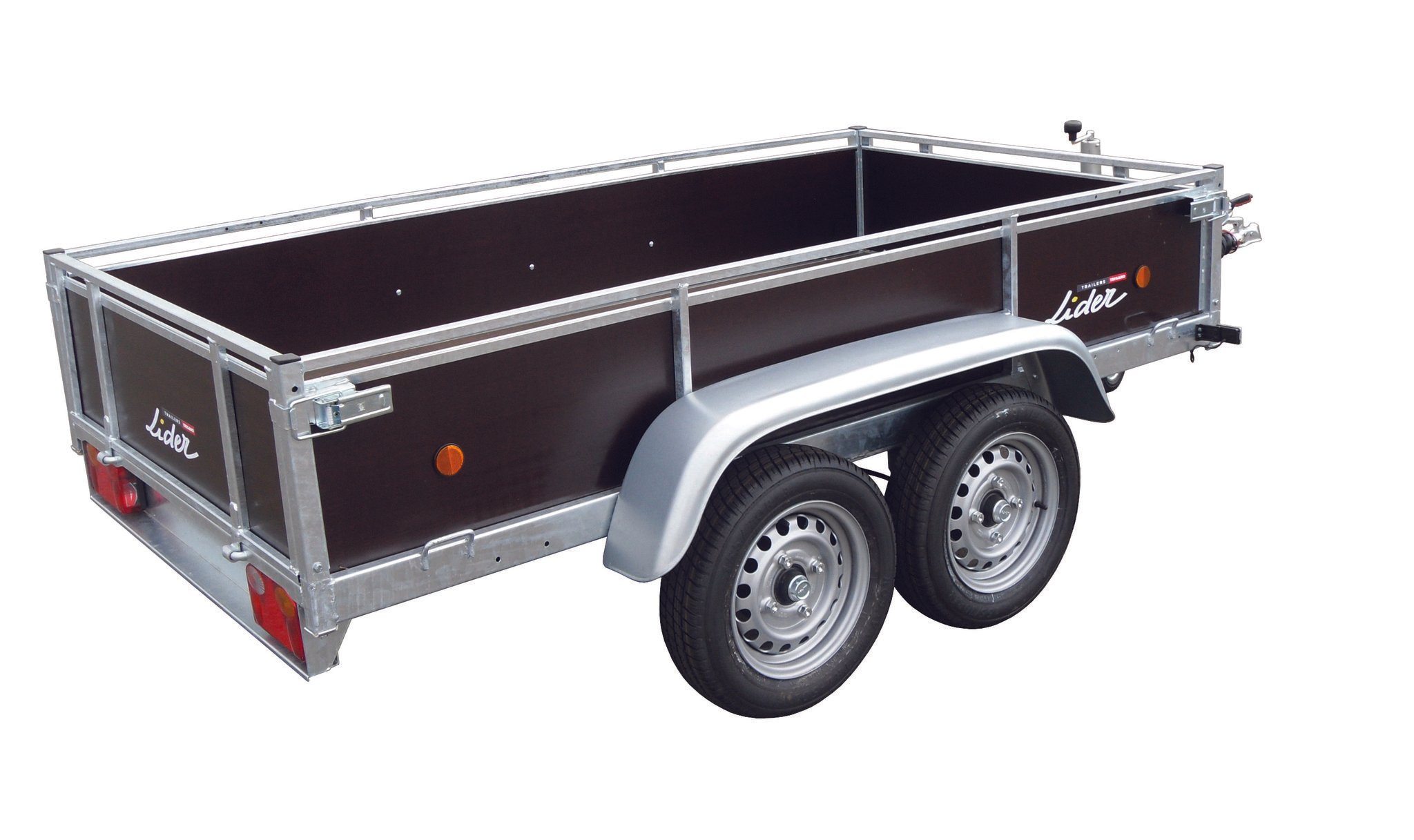 PTAC de 1000 à 3000 kg. Mase à vide 320 kg. Dim. utiles 251 x 133 x 40 cm. Essieux 2 x 750 kg. Caisse fixe. Roue jockey Ø 60. Ridelles AV et AR. Plancher antidérapant.