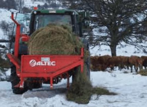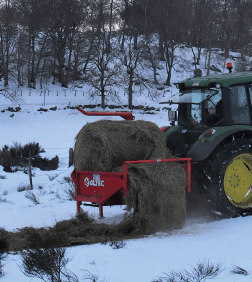 Une gamme de dérouleuses légères et simples spécialement conçue pour des valets de ferme, petits tracteurs et chargeuses articulée. Idéales pour dérouler des bottes rondes d’un diamètre de 150 mm. La distribution peut être arrière ou avant gauche (modèle DR150) ou droite ou gauche (modèle DR 150T). Le tapis à chaine est pourvu de dents fixes et fonctionne en marche avant et arrière ce qui gère la position de la botte.