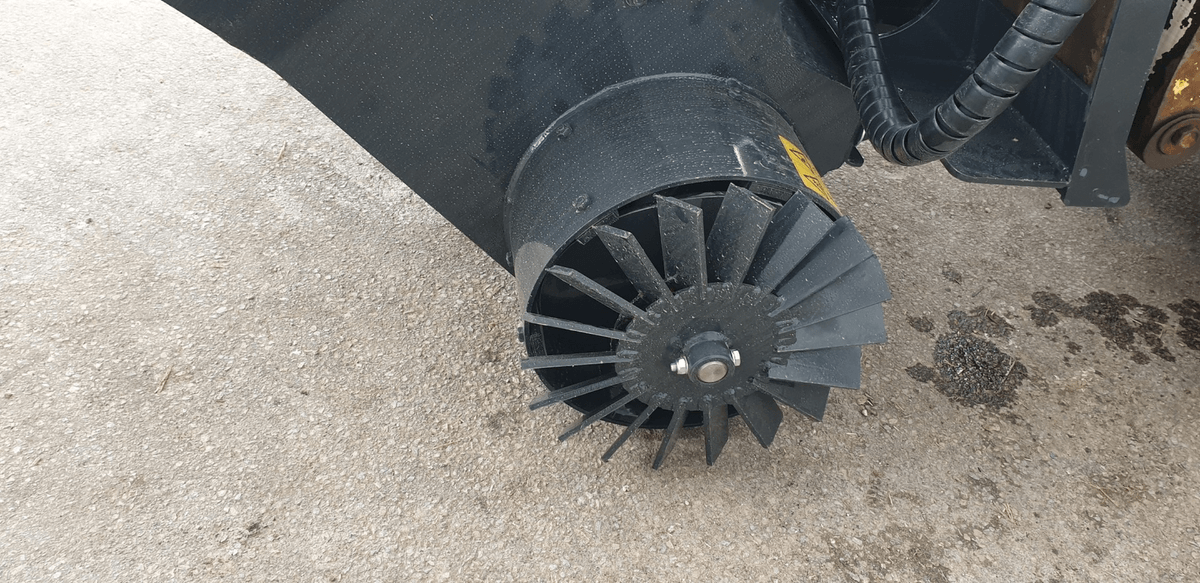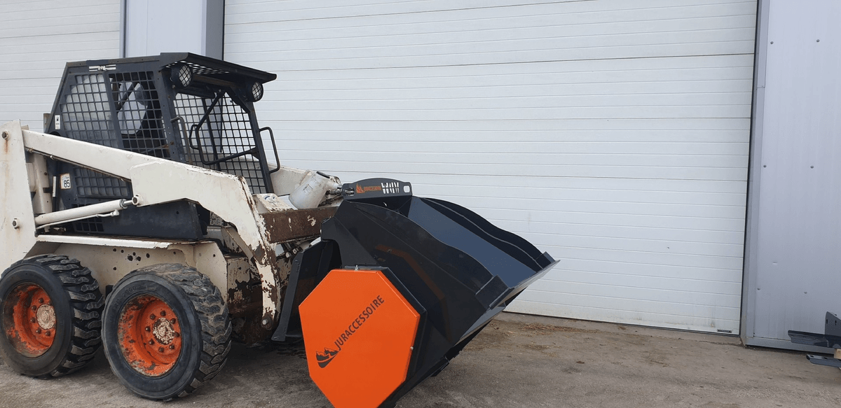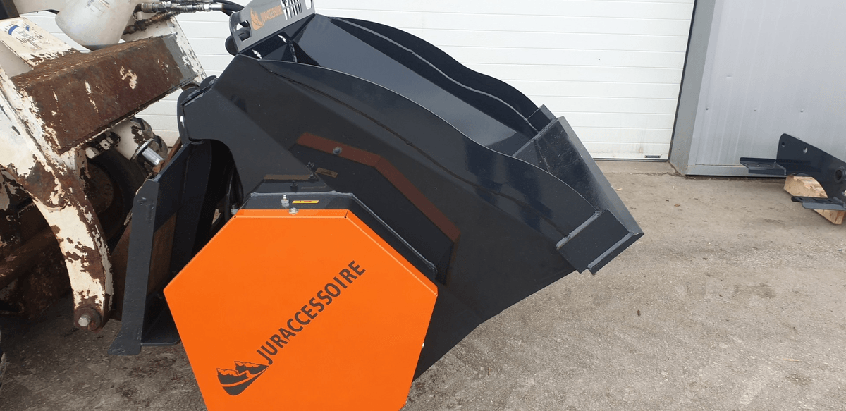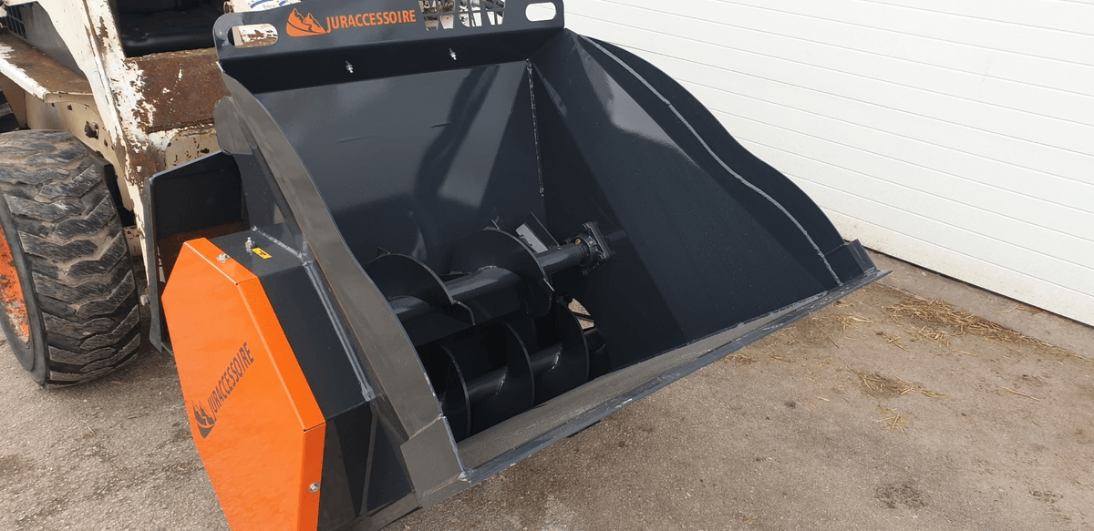 - 1 - Godet distributeur d’aliments à 1 vis pour répartir des aliments type ensilage de maïs ou d’herbe en brins ou aliments courts. Distribution sur le côté par vis en fond. Sortie à gauche avec possibilité de 2 sorties en option. Sortie à droite possible. Un désilage par griffe ou couteau ainsi qu’un coupe betteraves ou pommes de terre et aussi faisable en option. La capacité du godet va 985 L à 2 500 L.