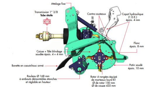 Rotor 4 rangées équipé de marteaux lourds B1.