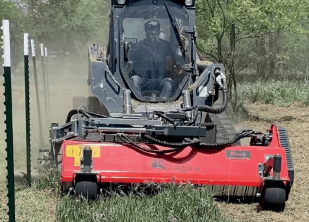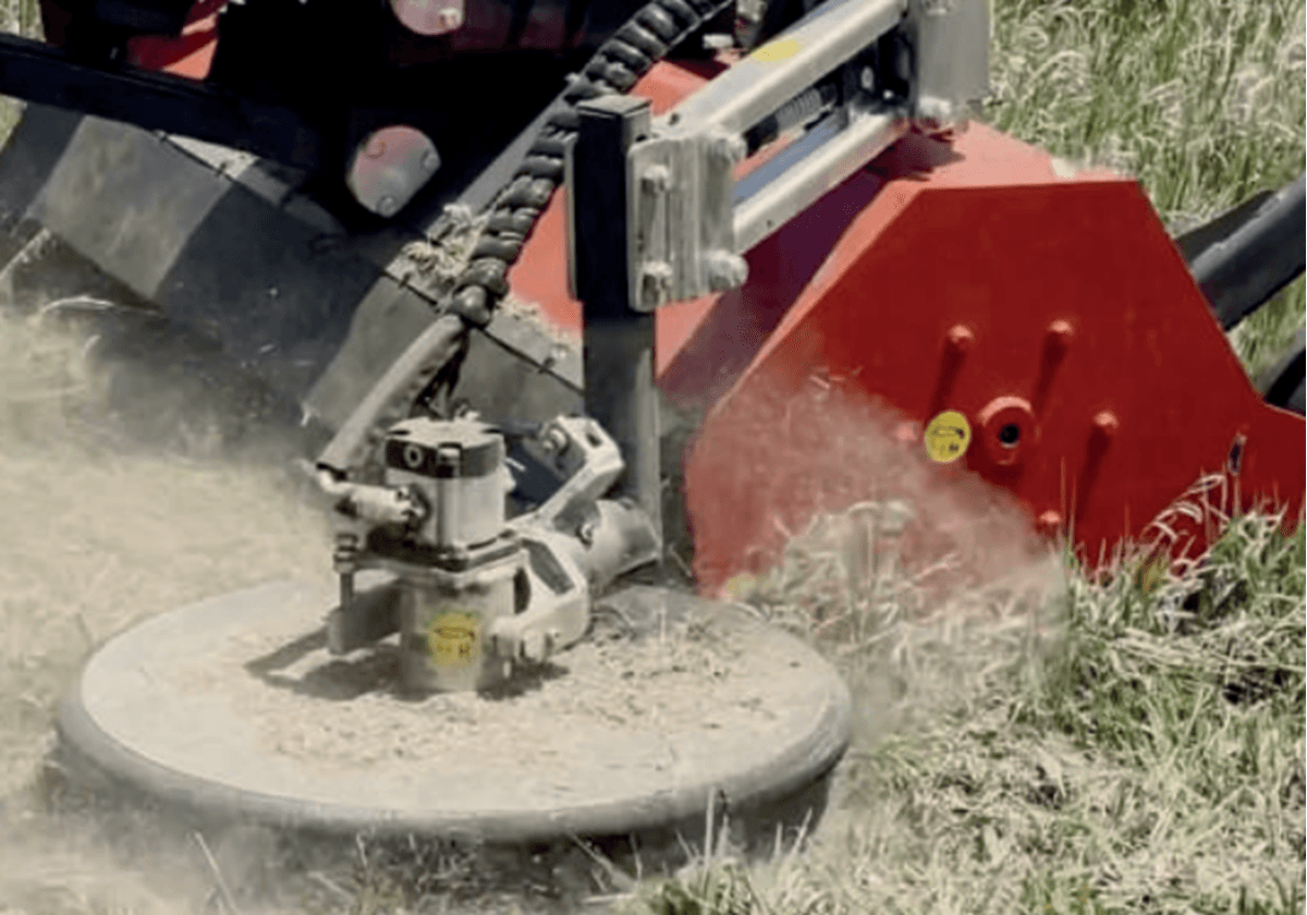 Broyeur TAURUS pour l’entretien des bords de route, pour le nettoyage sous les rails de sécurité ou le long d’une clôture, les rangées d’arbres, les espaces verts…équipé de ressort de flottaison à disque indépendant pour s'adapter au terrain, de roues pivotantes réglables en hauteur pour régler la hauteur de coupe, disque inter filaire G700, ressort de variation de force d'appui contre l'obstacle, transmission par courroie, patins et rouleaux réglables, tiroir de groupe de vannes protégé, attelage frontal avec système d'adaptation au sol sur axe vertical et horizontal