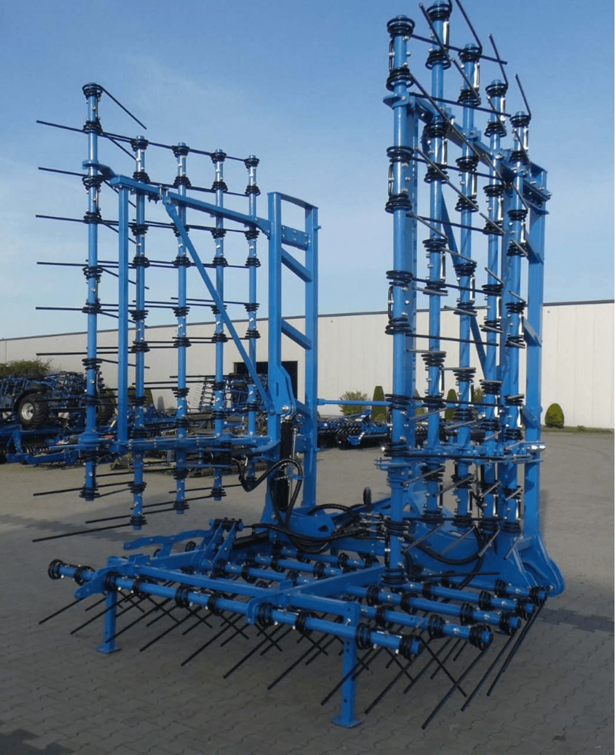 La gamme de herses à paille est composée de 3 modèles de largeurs de travail différentes, équipés d’un attelage 3 points cat II et III, 5 rangées de dents de 16 mm de Ø avec des dents de 750 mm à terrage hydraulique. Vitesse de travail jusqu’à 25 km/h. Choix d’équipements en options pour chaque utilisateur. La puissance nécessaire va de 90 à 180 cv en fonction du modèle.