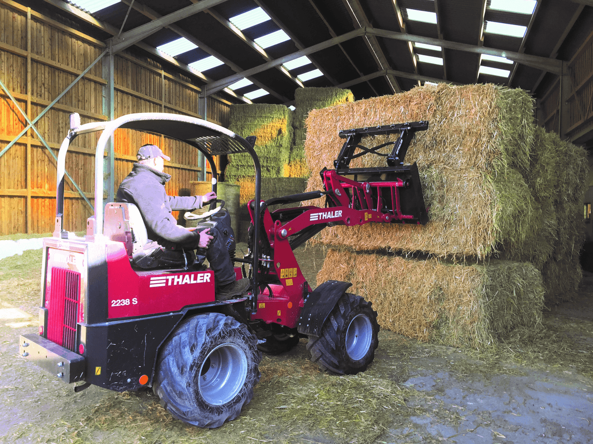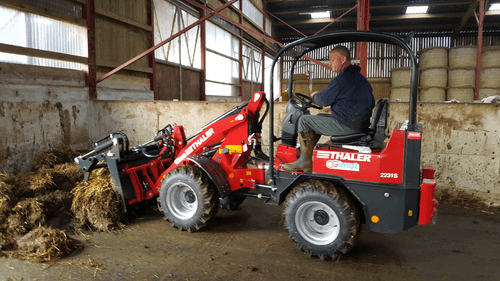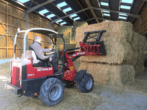 Une gamme complète de 19 à 72 cv. Bras standard télescopique, hauteur de levage de 2,5 à 4 m. Attelage euro. Hydrostatique Bosch Rexroth. Moteur Yanmar. Machine très bien équilibrée. Très bon rayon de braquage. Réglage hydraulique de la hauteur de l'arceau en option pour circuler dans les bâtiments bas.