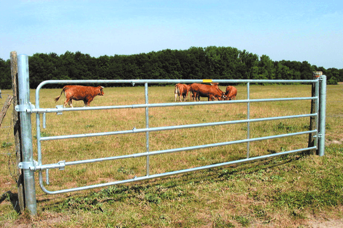 Une gamme de barrières d'herbage de 3 à 6 m construite en tube de 42 mm de diamètre avec partie extensible en tube de 34 mm de diamètre.
