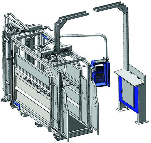 - Cage de contentions assistées pneumatiques à parois largeur variable et fond anti dérapant.