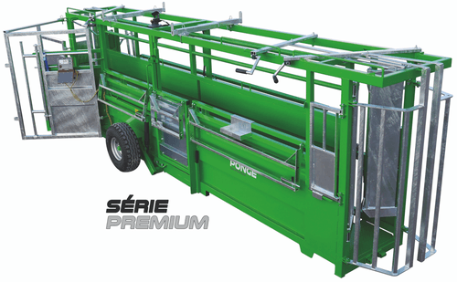 Couloirs de contention mobiles mesurant 6 m. Entrée arrière ou latérale. Stabilité au sol irréprochable grâce à leurs roues 10,0/80-12, ossature tube rectangulaire renforcée par un poteau central. Volets rabattables sur toute la longueur d’intervention accès aux animaux sécurisés. Poste de travail fonctionnel, commandes ergomiques et réglables. Attelage intégralement démontable.