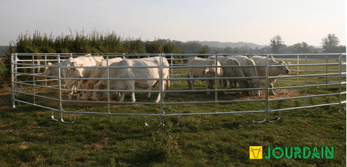 Barrière légère de contention pour bovins et chevaux permettant la réalisation simple et rapide de parcs mobiles de contention. Panel de contention fabriqué en tube ovale de 50 x 25 mm (extérieur) et 42 x 21 mm (intérieur). Entre tubes de 21 cm et hauteur de 1,57 m. 3 longueurs de panel possibles: 2,40 m, 3 m et 3,60 m.