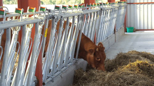 Le cornadis réglage collectif est dérivé du cornadis axial I, avec ses bras mobiles cintrés et ses plats de fourche galbés, il offre un grand passage de tête pour les animaux faiblement encornés.