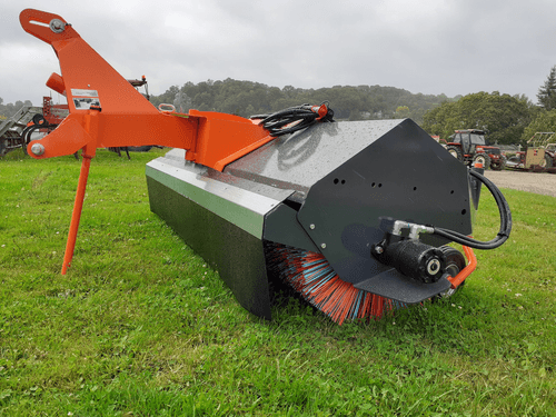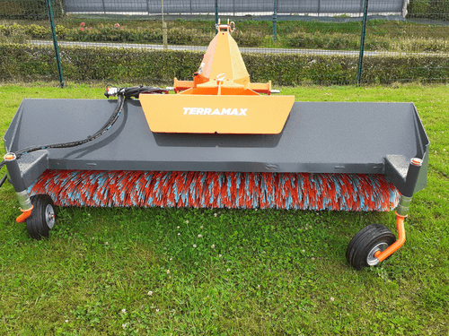 Balai mixte Polyester/Polypropylène Ø 550 mm, largeur 2,10 m. Entraînement hydraulique. Orientation et déport mécanique 8 positions (D et G). 2 roues de terrage 400x80 pivotantes à 360° et réglables en hauteur. Béquille de dépose. Moteur hydraulique protégé. Attelage trois point arrière.
