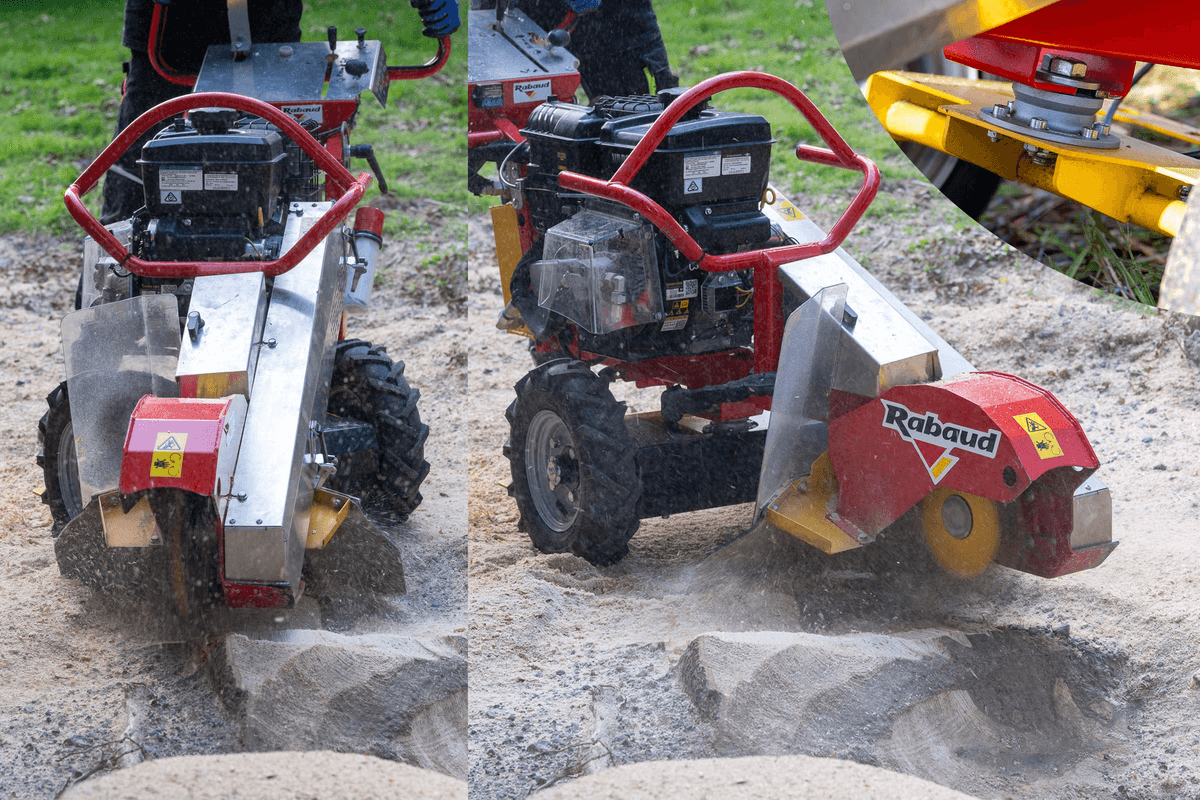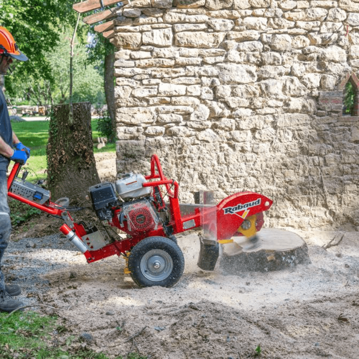 Rogneuses sur roues, cette gamme composée de 2 modèles thermique compacts et d’une largeur de 0,70 m montés sur pivot pour faire un balayage droite/gauche avec une envergure de 0,85 m. Rotor équipé de 8 dents taille 7 repositionnable 3 fois pour plus de durée. Transmission par 2 courroies trapézoïdales. Motorisation essence HONDA : 6,1 litres ou BRIGGS & STRATTON : 5,7 litres. Embrayage centrifuge sur modèle XYLOGROK 39 DM et électromagnétique avec frein intégré sur modèle XILOCROK 39 DA.
