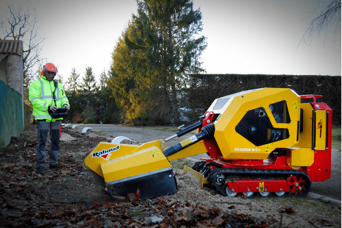 Tablier réglable en hauteur pour optimiser les capacités de fraisage de la rogneuse.