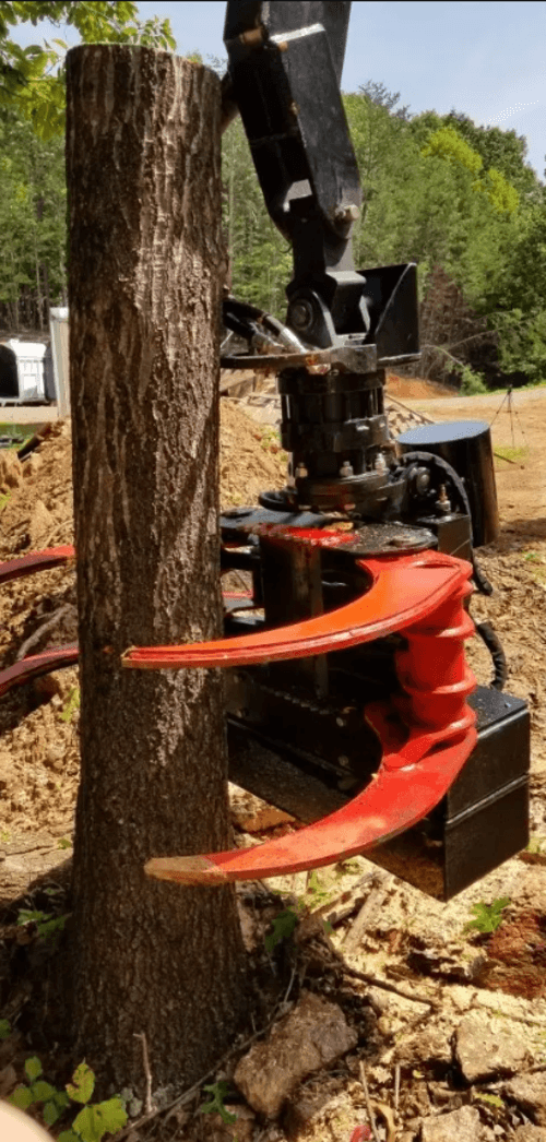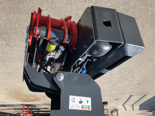 Pour les applications plus complexes, nous proposons le grappin coupeur abatteur pendulaire avec TILT, offrant un diamètre de coupe maximal de 500 mm et une force de 1275 daN, spécialement conçu pour les pelles ou grues, permettant une flexibilité et une polyvalence accrues sur le terrain.