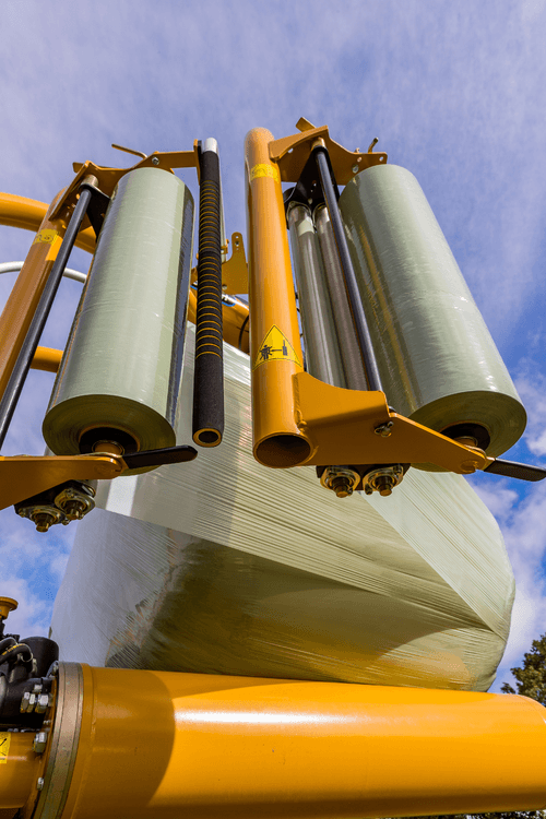 Dès que la balle est enrubannée, le système de coupe film télescopique « Cut & Start » robuste et ne nécessitant aucun réglage, coupe le film.