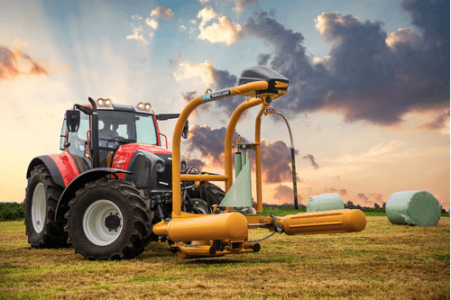Enrubanneuse à balles rondes portée à satellites
