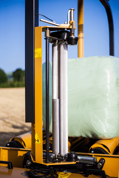 Cette enrubanneuse est équipée de rouleau hydraulique pour manipuler les balles de 0,6 à 1,4 m et d’une longueur de 1,9 m. Ces rouleaux pouvant être vite ajustés et le niveau de la machine peut être ajusté hydrauliquement à l’avant et l’arrière pour garantir la mise à niveau des balles durant l’enrubannage.