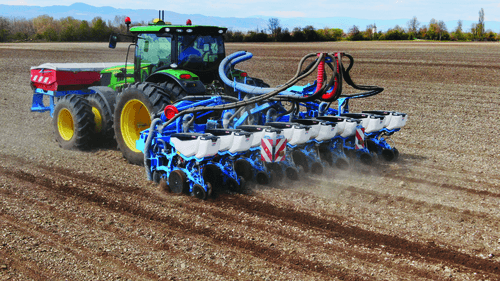 Semoir monograines pneumatique à enterrage à disques.
