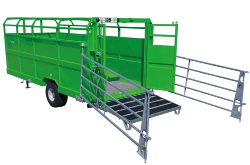 Bétaillère pose à terre 6m (modèles disponibles de 5 à 7m), freinage 40 km/h double ligne pneumatique (disponible également en freinage double ligne hydraulique, tarif sur demande). Equipement de série : portes automatiques AFS, éclairage, gyrophare et éclairage latéraux LED, roues 385/55 R19,5 8 axes – neuf. Options disponibles : barrières de chargement, séparation intérieure, plancher antidérapant…