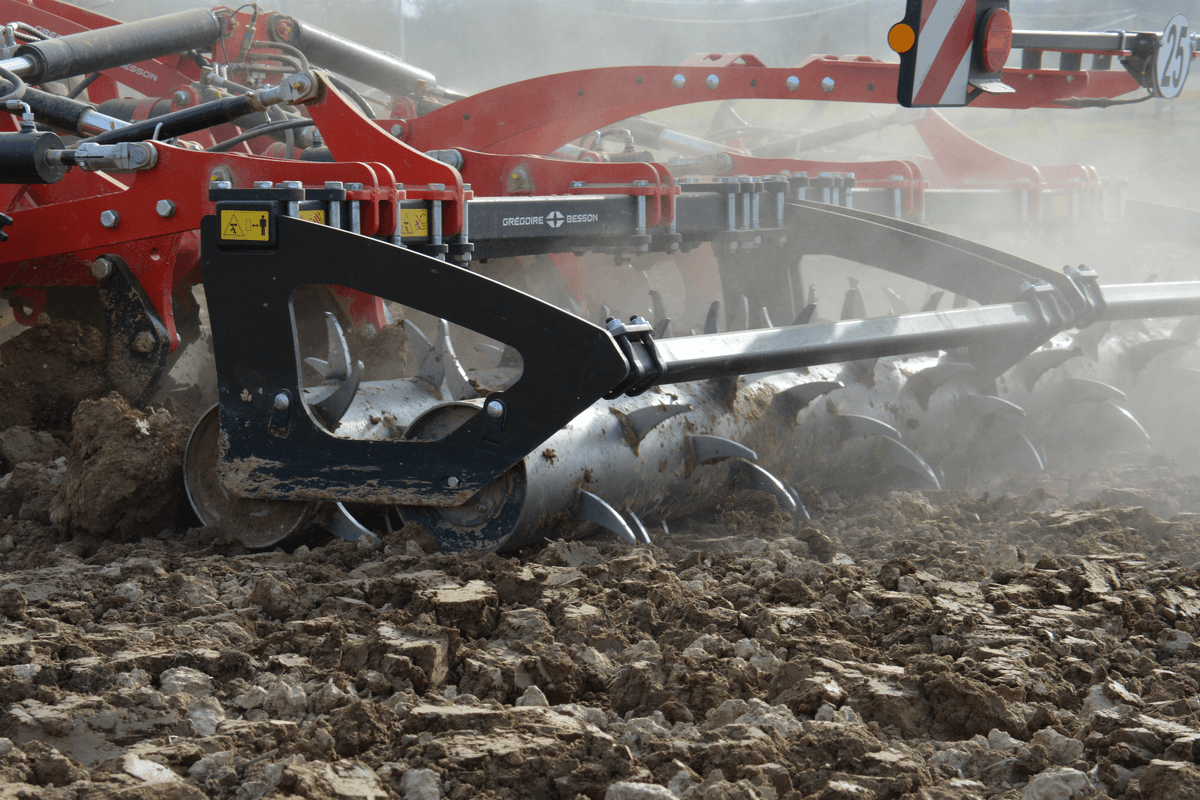 Largeur de travail 4,50m : 9 dents, tracteur 210 à 330cv, ou 5,50m : 11 dents, tracteur 280 à 400cv, double-poutre portée repliable en 2 parties, tous les réglages depuis la cabine, sécurité boulon ou hydraulique, 4 rouleaux disponibles