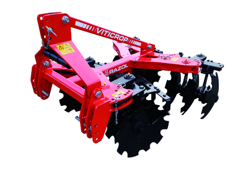 Le VITICROP est un pulvériseur à disques qui permet de travailler les sols en profondeur pour la destruction des mauvaises herbes et combiné à un rouleau, il permet un travail superficiel d'entretien du rang. Travail de déchaumage, protection des pieds de vignes des gelées, favorise le développement du pied en fonction de la position choisie. Poutre châssis de section 100 x 80 x 6 mm, attelage Piton cat. 1 et 2 réglable en hauteur, largeur de travail réglable sauf sur 8 disques, disques de grands diamètres…La largeur de travail va jusqu’à 2,15 m et la version 8 disques existe en largeur 0,99 m.