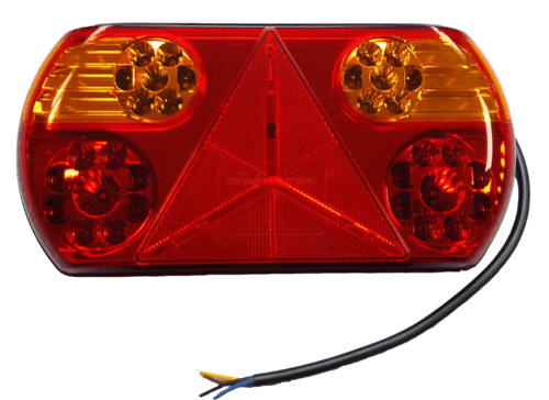 Triangle réfléchissant. 12 V. 2,5 m entre les 2 feux. Câble : 7,5 m. Aimant au dos.