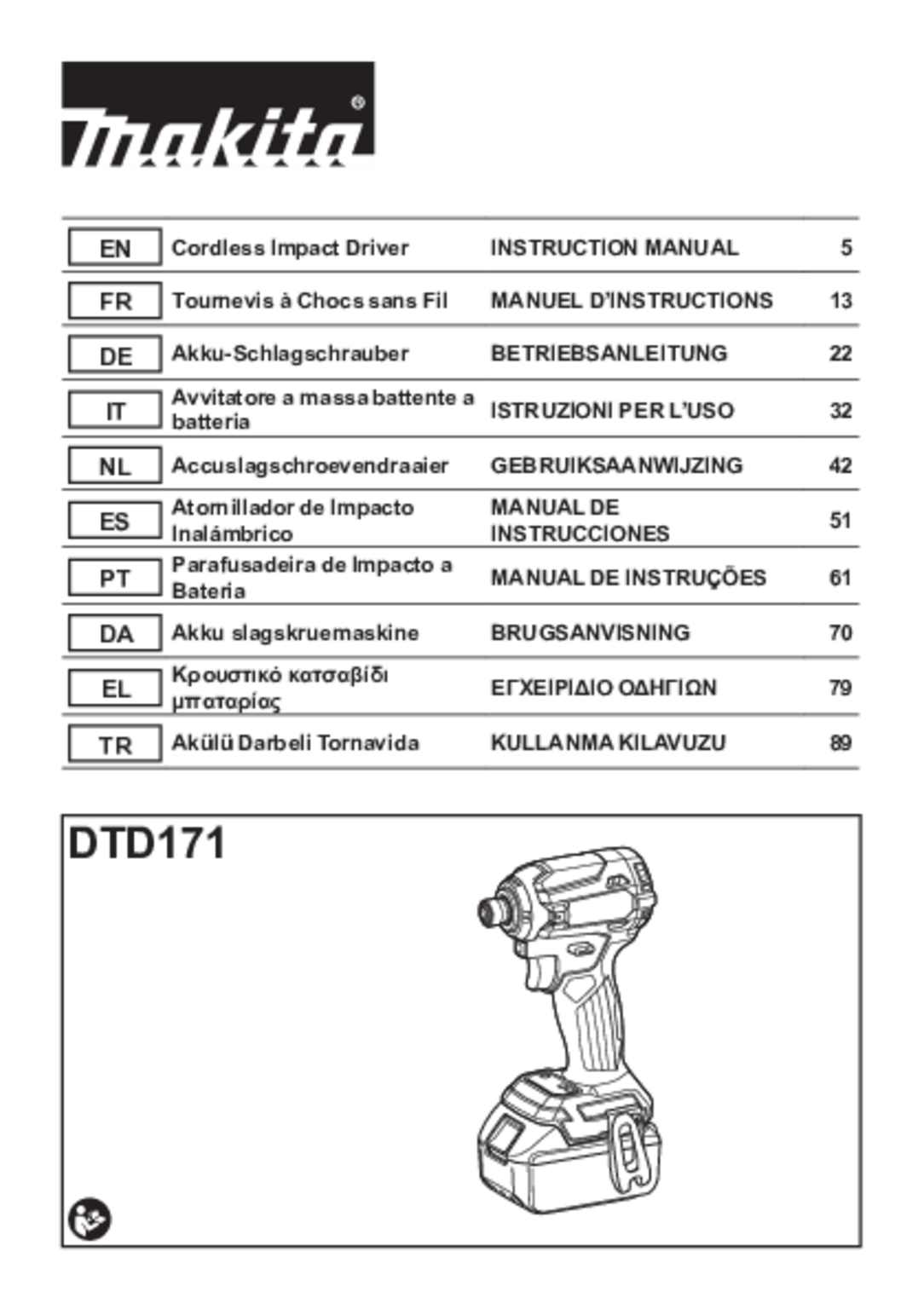 - Visseuse à chocs 18V 180 NM DTD171ZJ