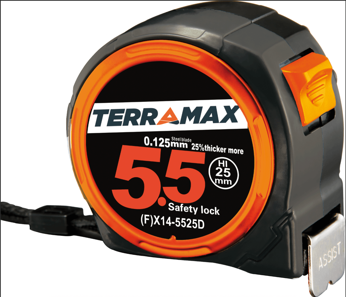 Mètre ruban 25 mm. Longueur : 5 mètres. Boitier compact. Arrêt automatique, crochet antidérapant.