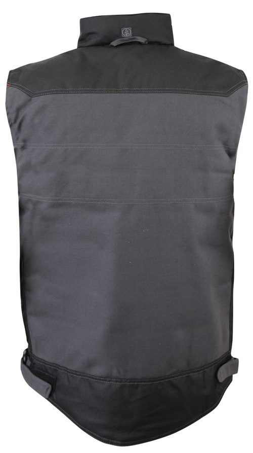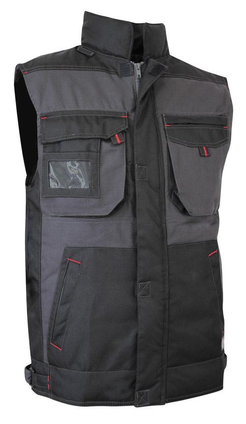 Col montant, 2 poches poitrine extérieures, 1 poche poitrine intérieure, 1 porte badge escamotable, ouverture pour kit mains-libres, 2 poches basses repose-main.