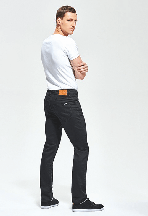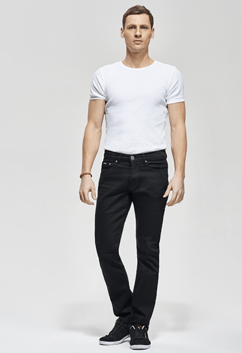 5 poches, coupe droite, taille normale, zip.