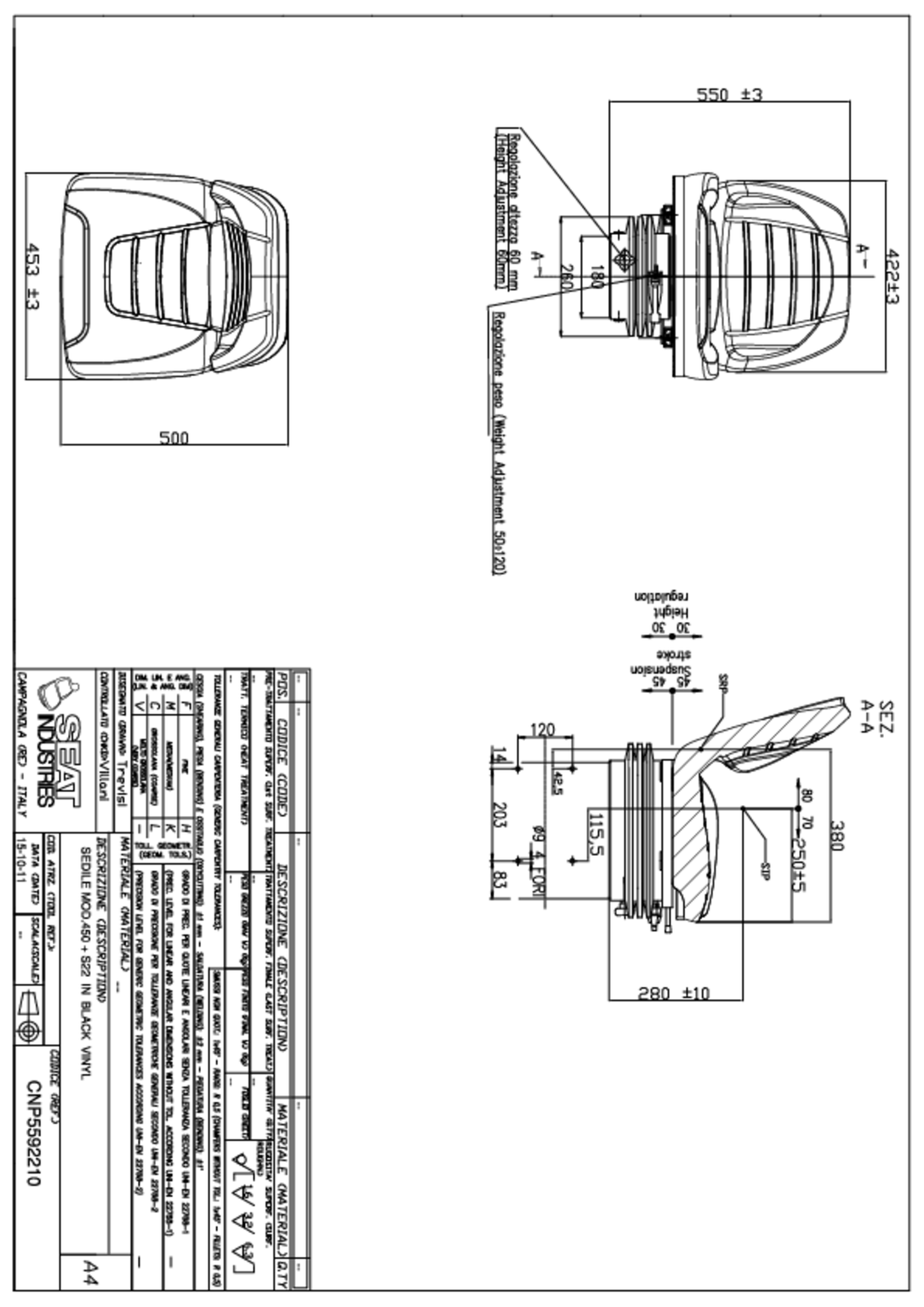 Siège de tracteur vigneron. Suspension mécanique. Structure en acier double épaisseur ultra résistant avec peinture à chaud. Assise et dossier larges, confortables et ergonomiques. Réglage du poids : 50-120 kg. Réglage en hauteur : 60 mm. Course : 150 mm. Suspension conforme aux dernières normes et homologations Européennes Annexe XIV 1322/2014 CATEGORIE A CLASSE I-II. Homologué pour machines selon les normes ISO7096.Sky noir. Livré monté.
