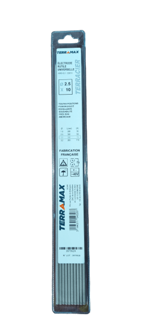 316L. A enrobage rutilo-basique à très basse teneur en carbone. Ø 2,5 x 300 x 30.
